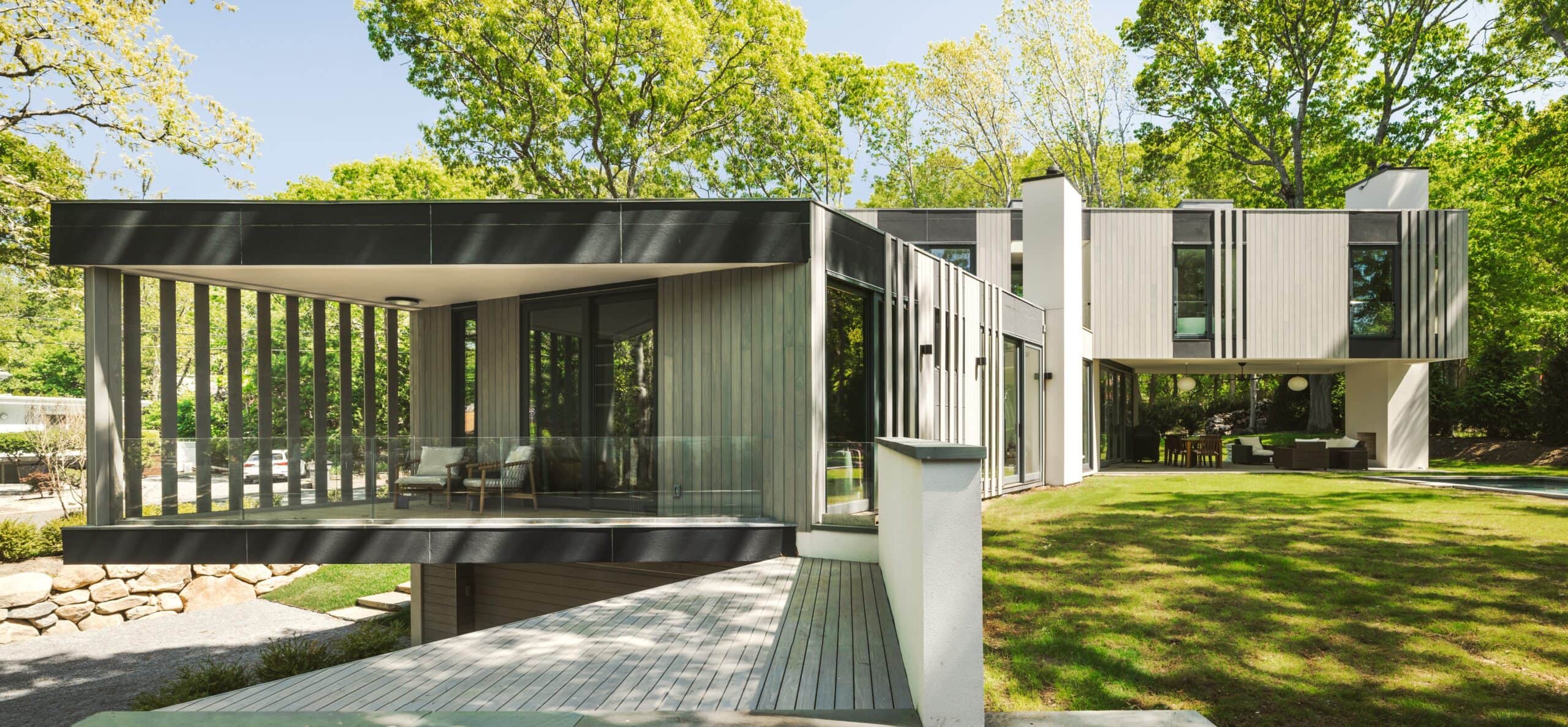 DAE provided structural and septic engineering for this award-winning residence in East Hampton, recognized for its modern architectural expression and innovative corner cantilever design.